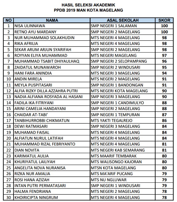 Selamat kepada calon siswa yang diterima di jalur akademik. Untuk tahap selanjutnya dapat melaksanakan daftar ulang dan pelengkapan berkas pada panitia ppdb MAN Kota Magelang.